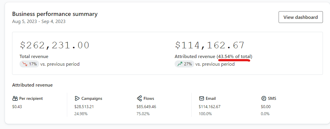 43% of Total Revenue from Email – Why fight for new customers when email makes up almost half of total revenue—on autopilot?