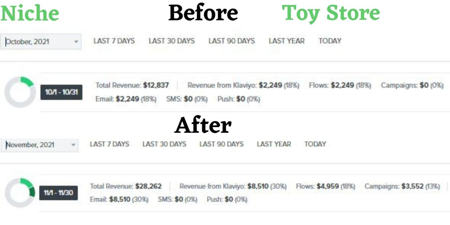 63% Revenue from Klaviyo – While other brands struggle with 10-15% revenue from email, we helped a client cross 63% revenue from email alone.
